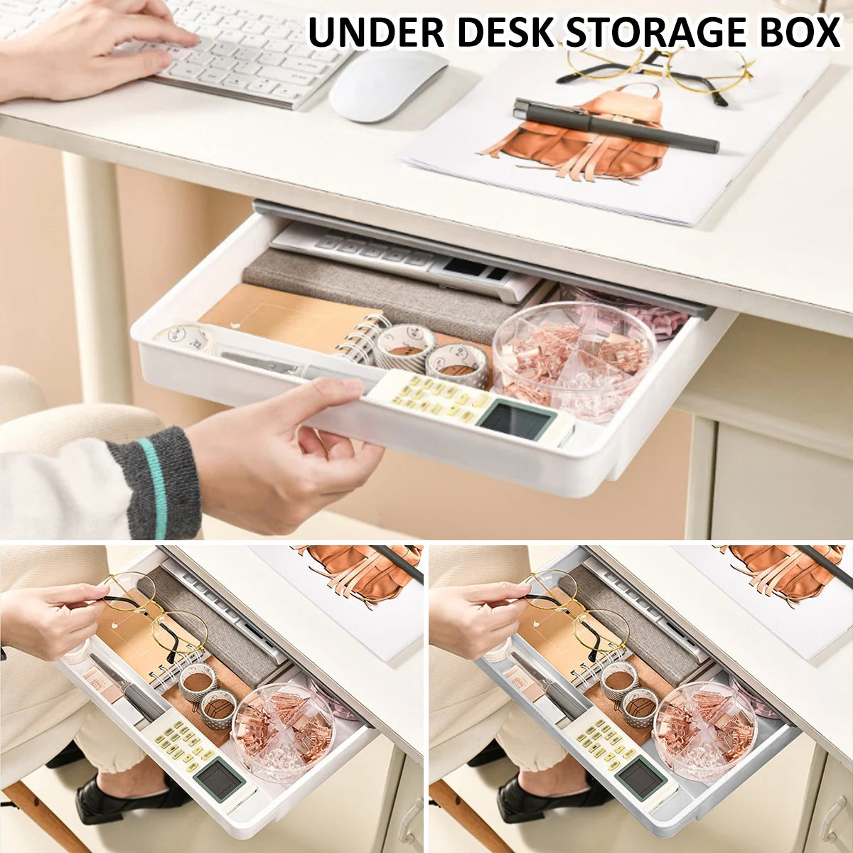 1/2Pcs Under Desk Drawer Storage Box Hidden Self-Adhesive Stationery Storage Drawer For Office Home Organizer Accessories