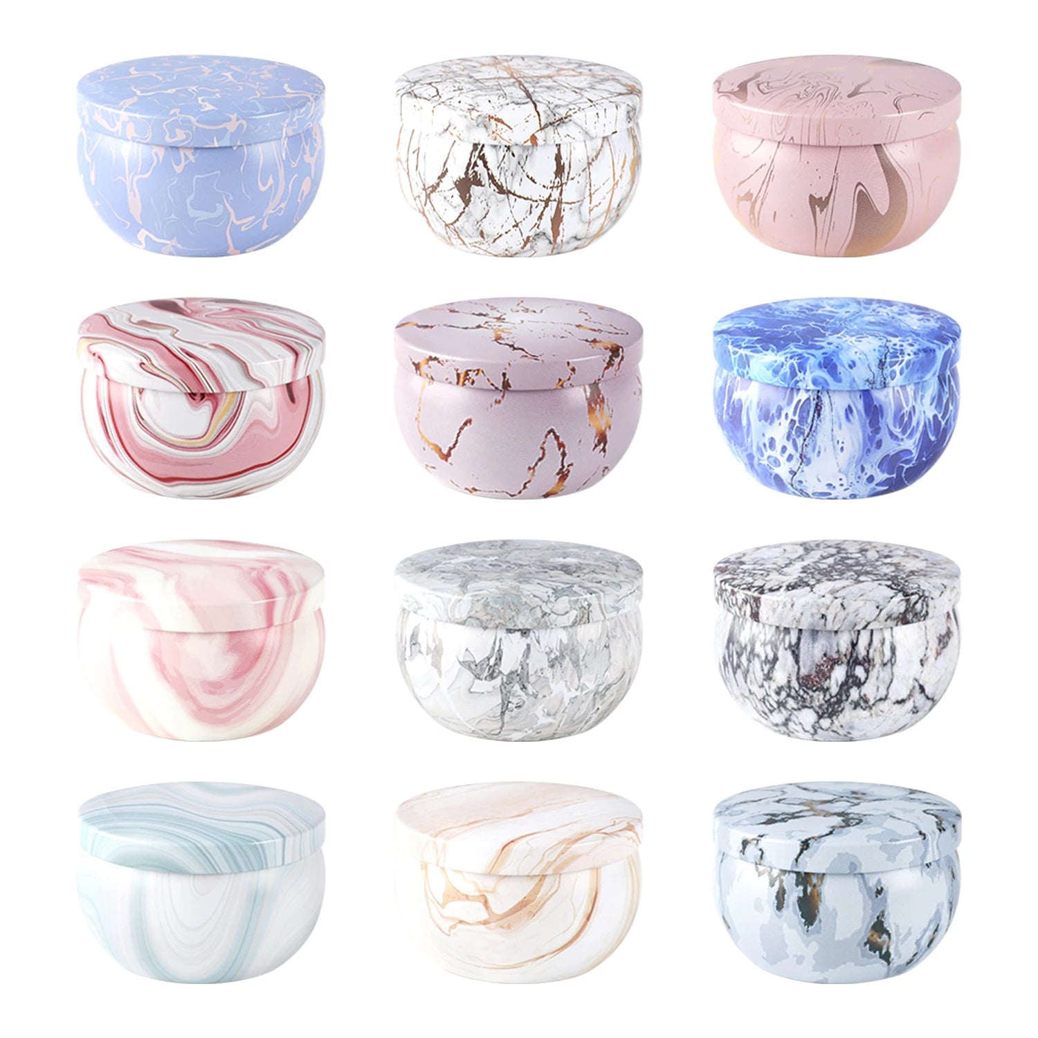 12 Pcs 1.57* 2.36inch (about 4* 6cm) Marble Round Candle Container Mold Container, Reusable Storage, High Temperature Resistance and Easy to Clean.