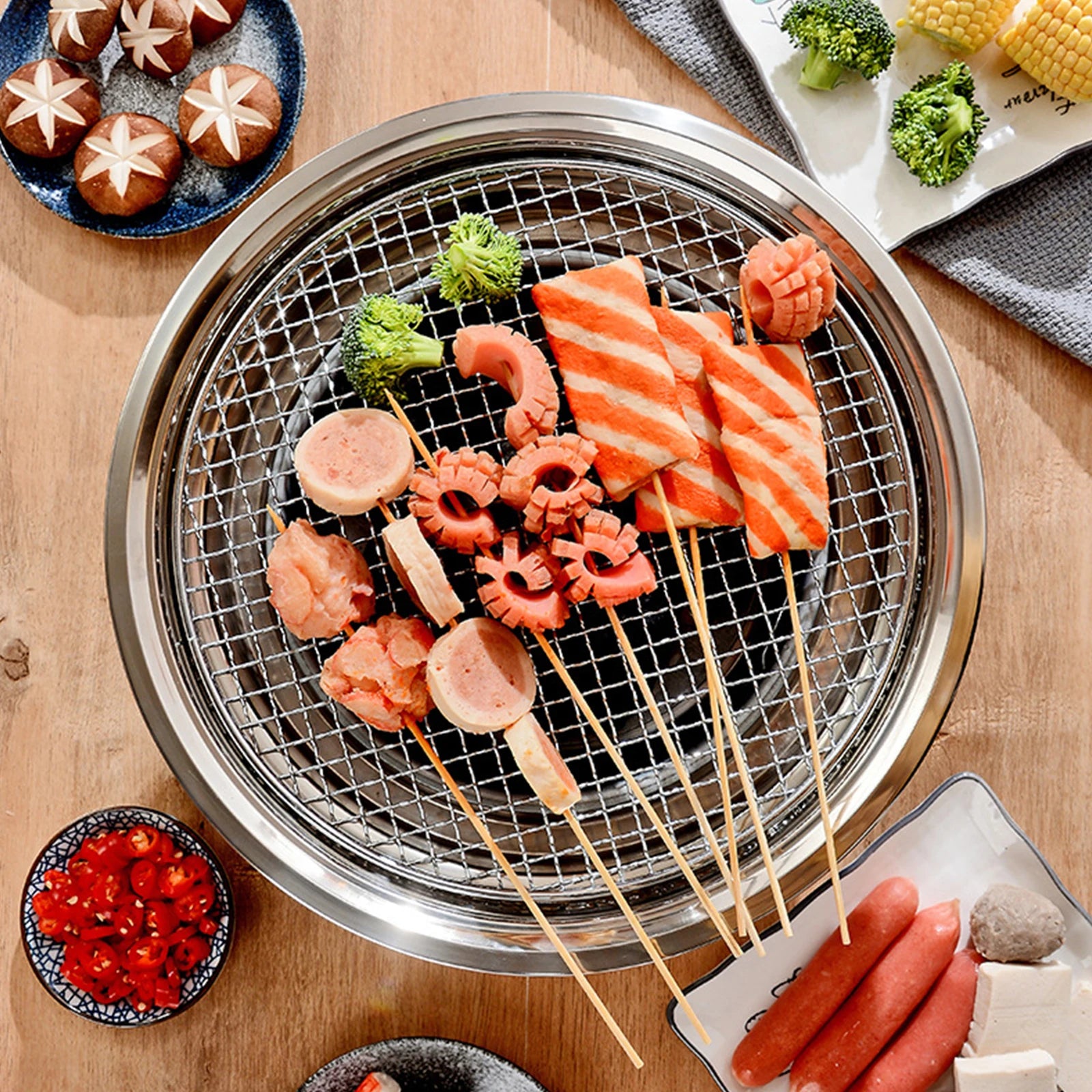 13 Inch Korean BBQ Grill Multifunctional Charcoal Barbecue Grill Round Camping Grill Stove Tabletop Smoker Grill Grilled Net & Tray