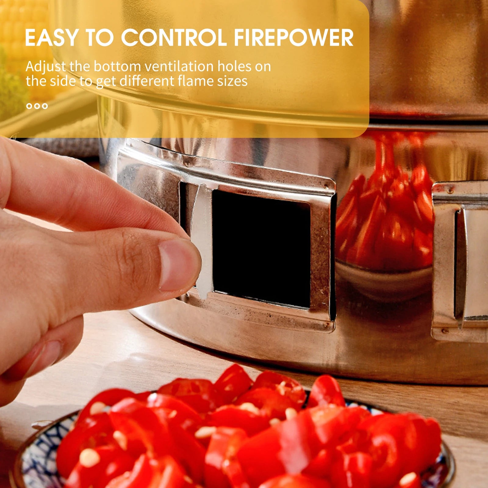 [Control Firepower] Adjust the bottom ventilation holes on the side to get different flame sizes.