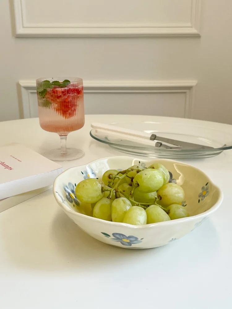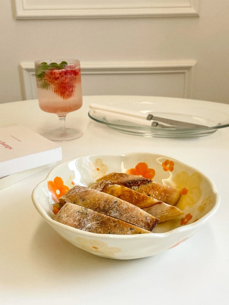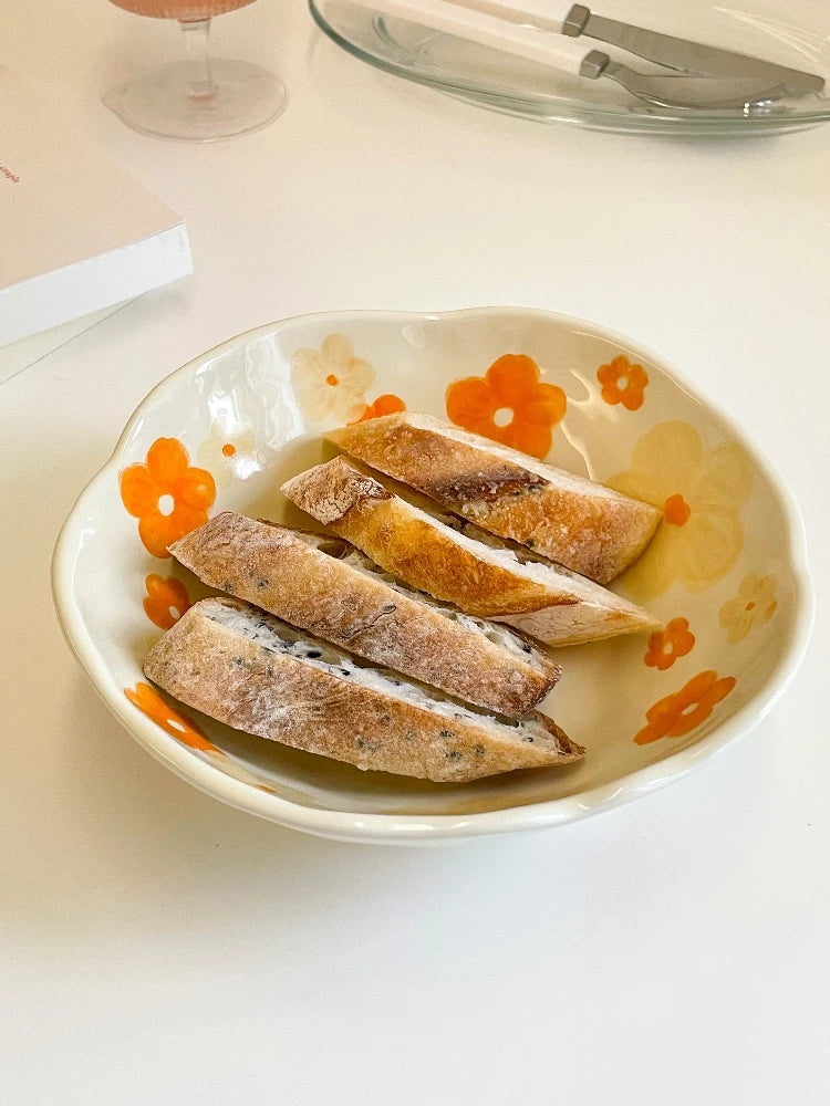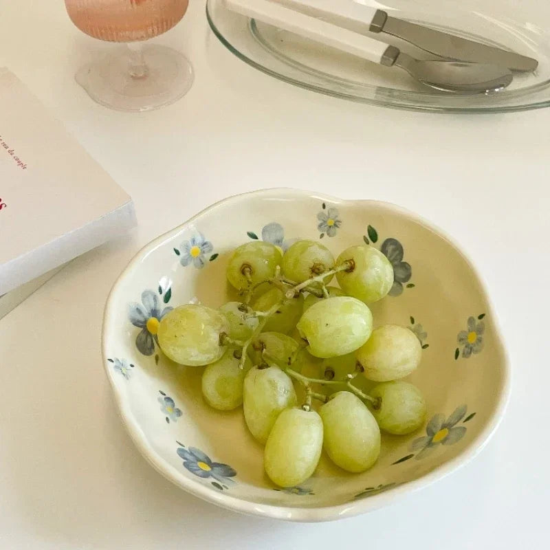 1PCS Ceramic Salad Bowl Hand Pinched Irregular Ins Korean Style Cream Yellow Yogurt Bowl Oatmeal Breakfast Plates Flower Bowl