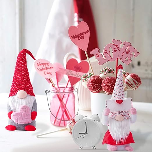 The Valentines gnomes are the perfect decorations for your home with the perfect size design, they are about 13.4" tall and 4.7 " wide, and you can put them on your fireplace, mantle, table, window, shelf, and it will stand out from your home decor. These gnomes will be wonderful decorations for the Valentine's Day space.