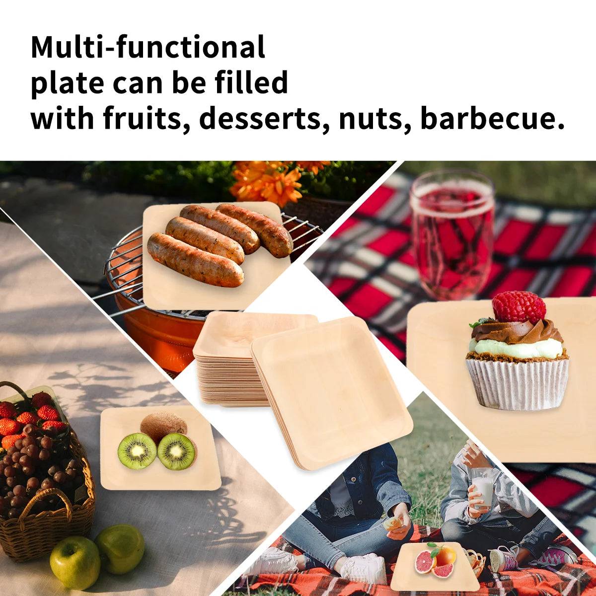 50 Pcs Wood Plate Durable Eco Friendly Tableware Disposable Plates Wooden Square Plates Bamboo Safe Heavy Not Breakable Easy