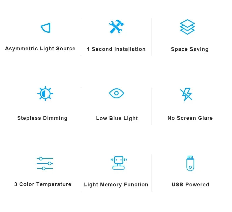 1. Computer monitor light with asymmetrical optical design, it only illuminates the desk and eliminates reflective glare off the screen, effectively protect your eyes in daily life.