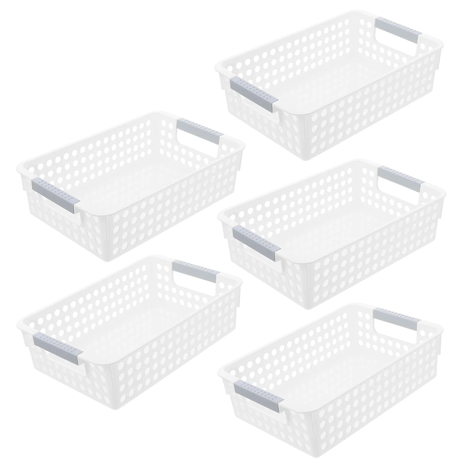 5Pcs Rectangular Storage Frame Plastic Baskets Mini Narrow Desk Organizer Home Office School Supplies Bathroom Accessories