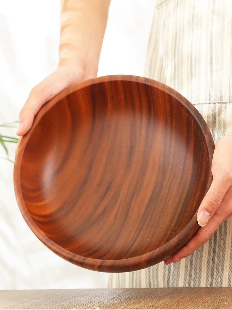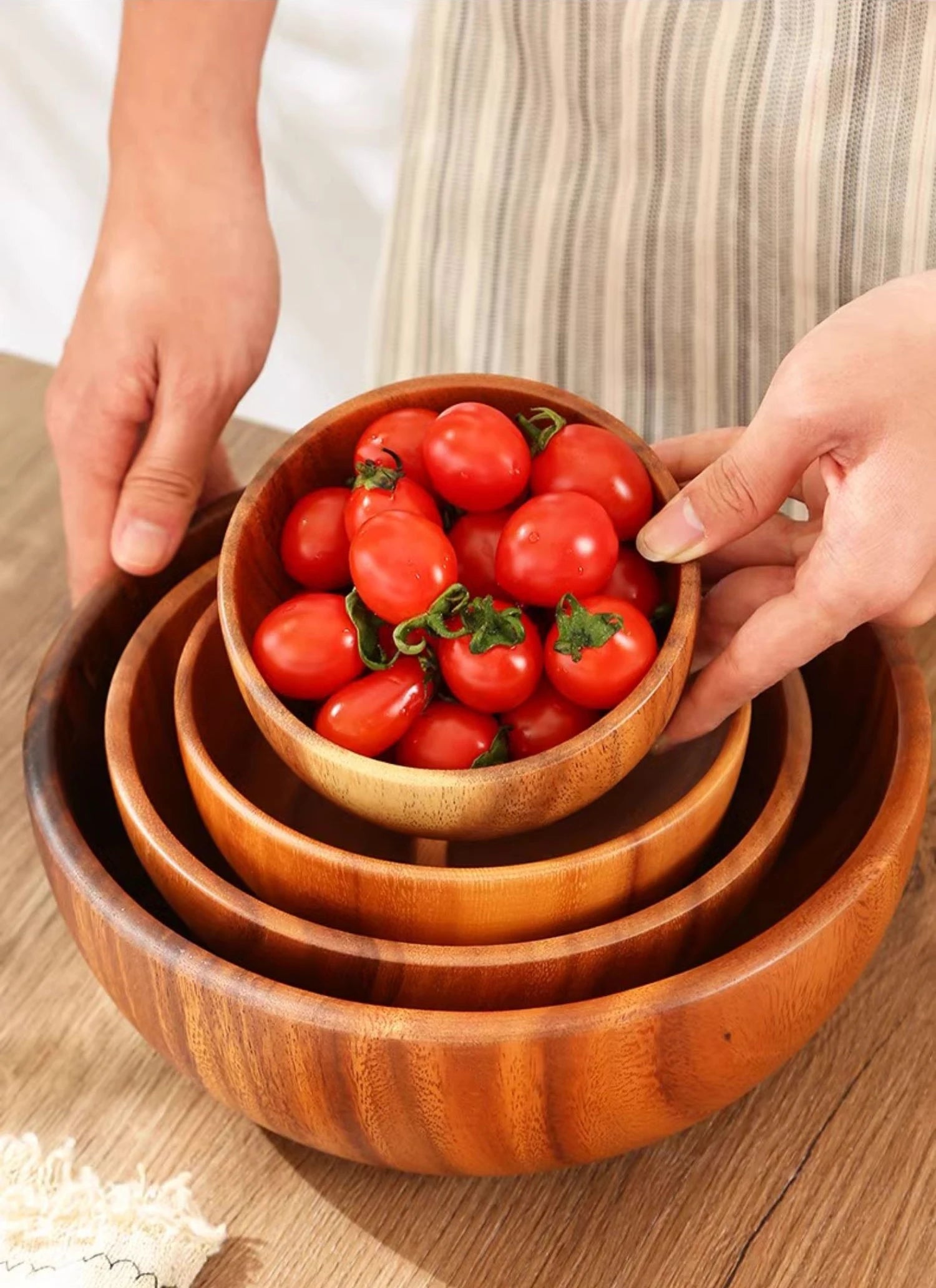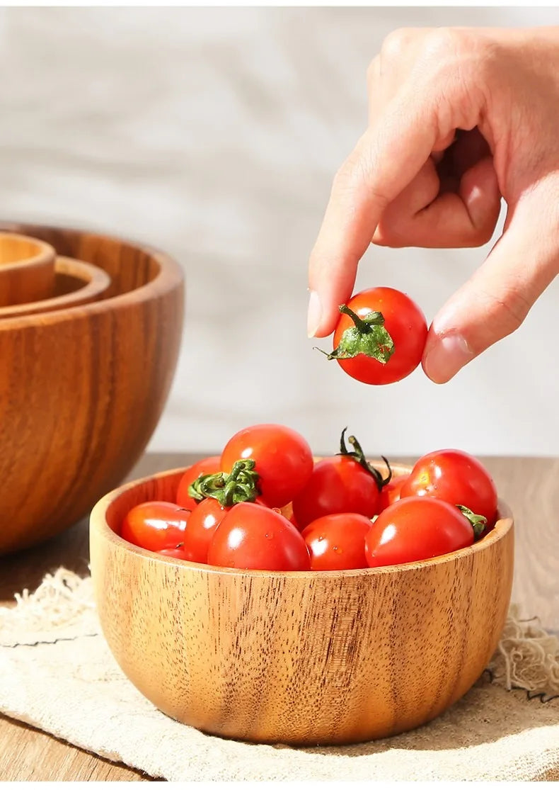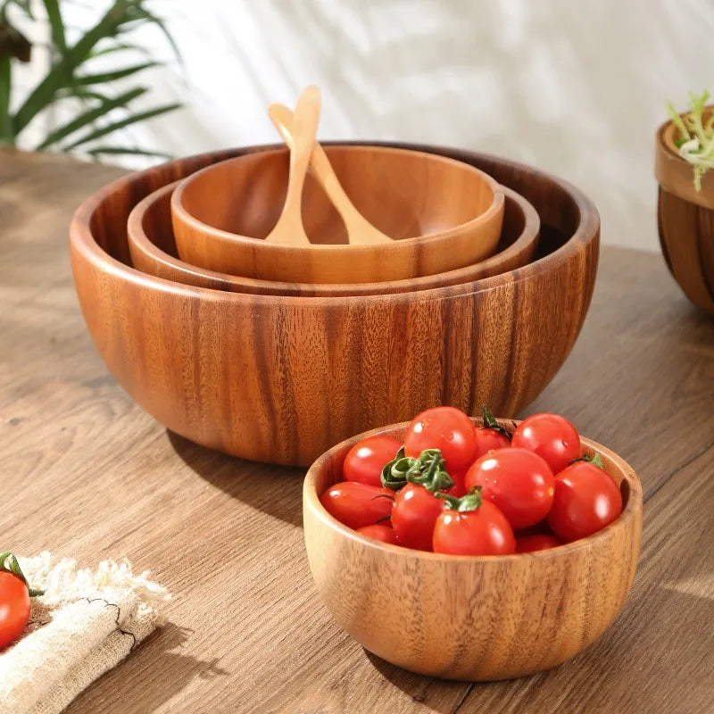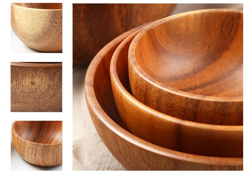Acacia Wooden Fruit Salad Bowl, Japanese Style Rice Bowl, Single Wooden Ramadan Tableware, Utensils for Kitchen, Wood Soup Bowls