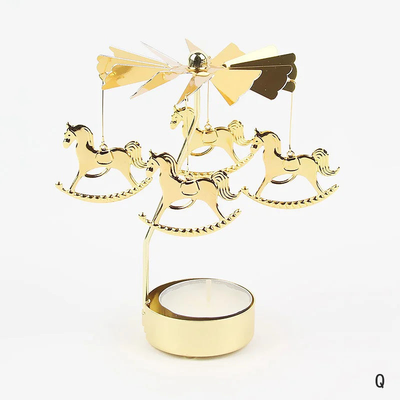 Carousel Candle Holder Gold Metal Candlesticks Room Decor Cake Rotating Candle Stand Home Decoration For Valentine's Christmas
