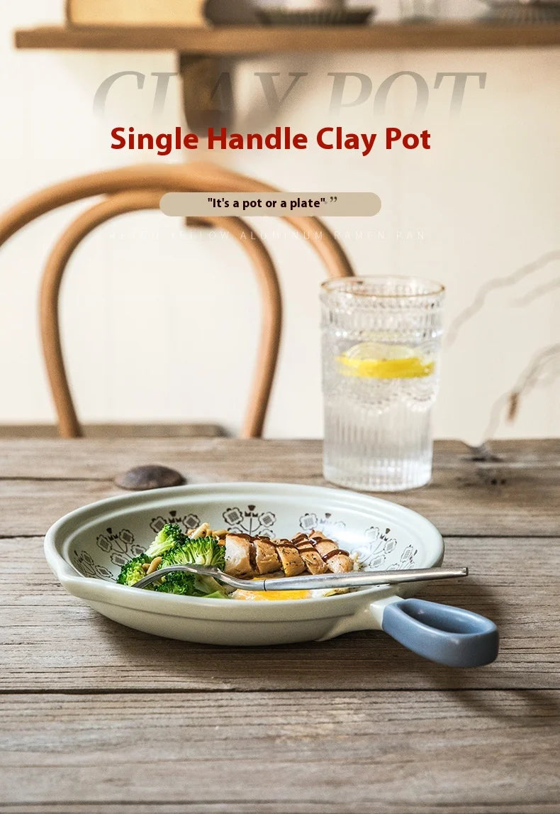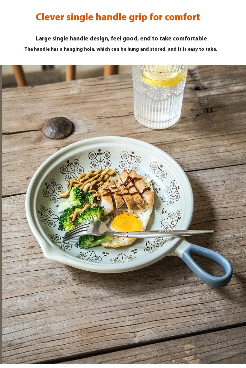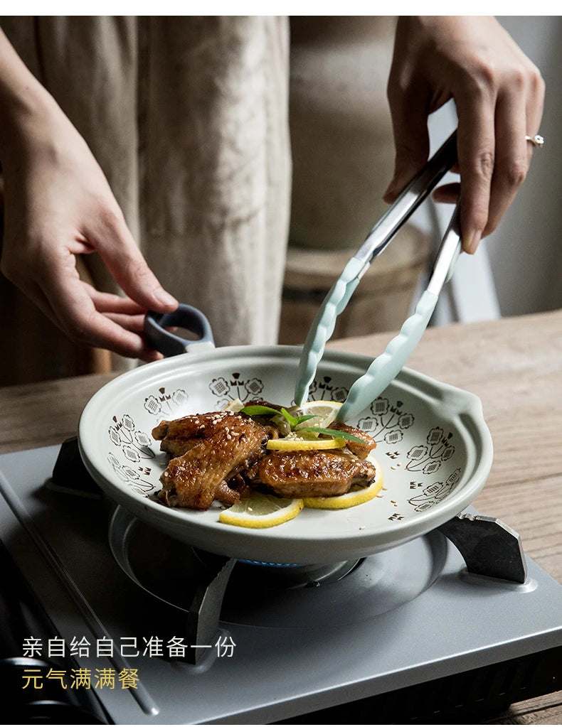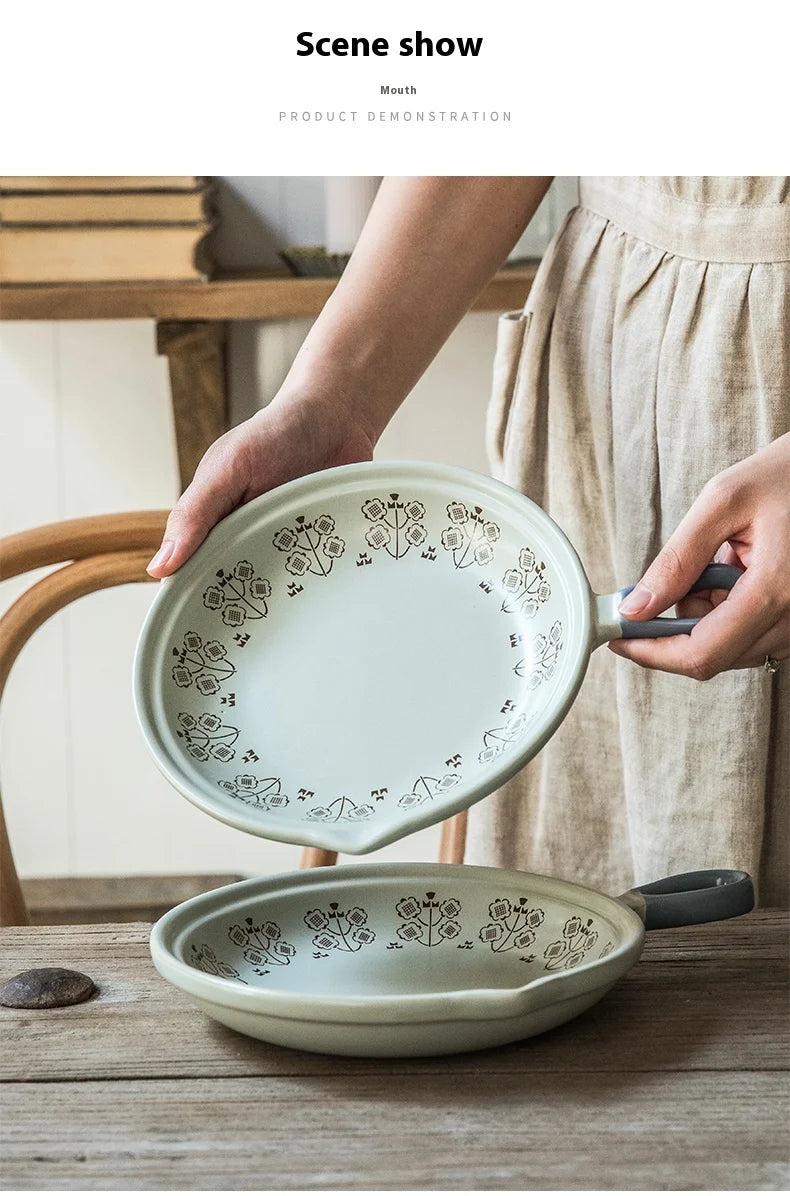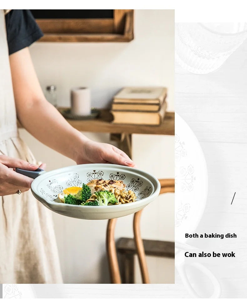 Ceramic Baking Pan Flat Bottomed Frying Pan Wok Pan Fruit Plate with Handle Dinner Dish Party Buffet Restaurant Cookware