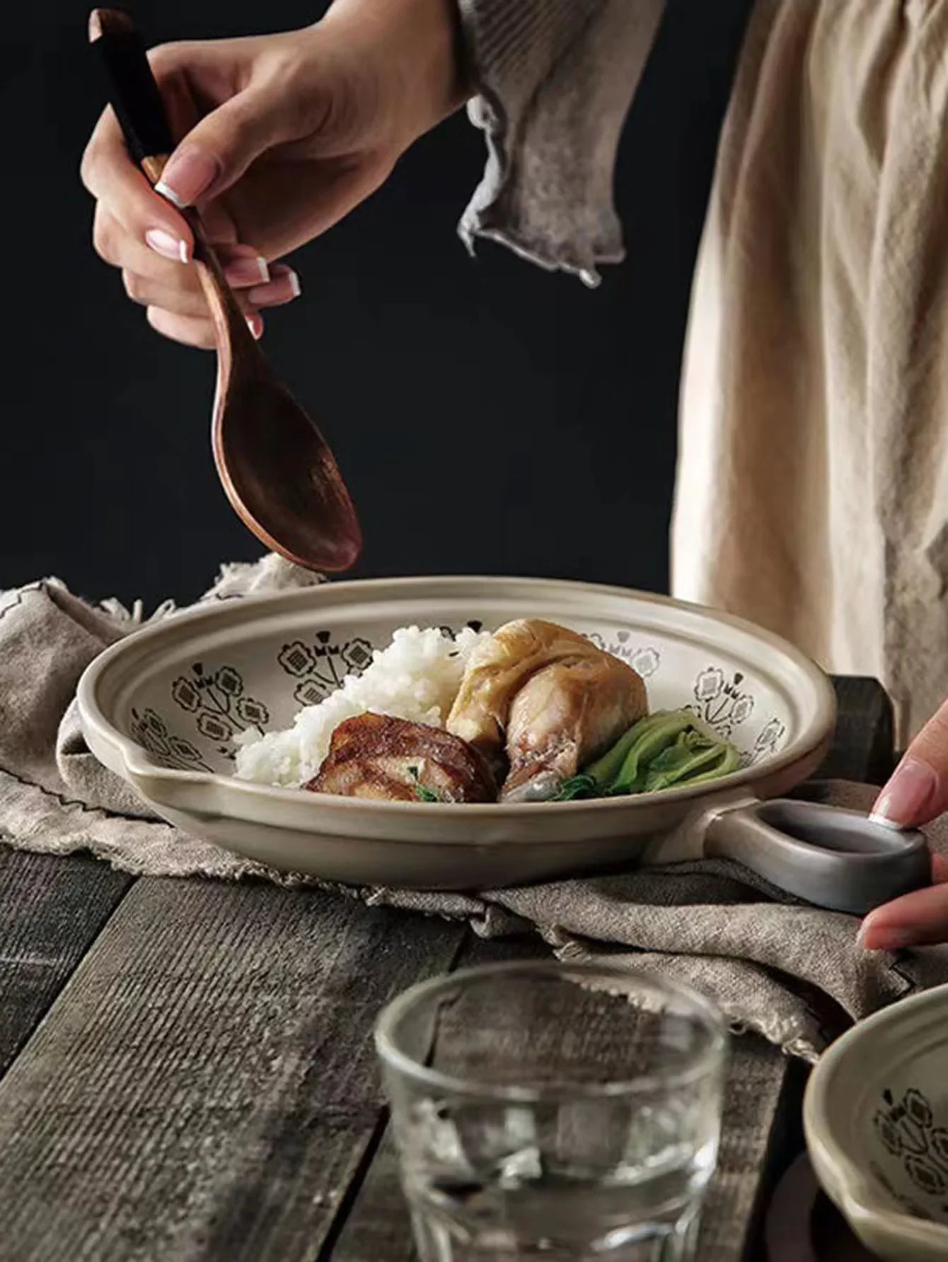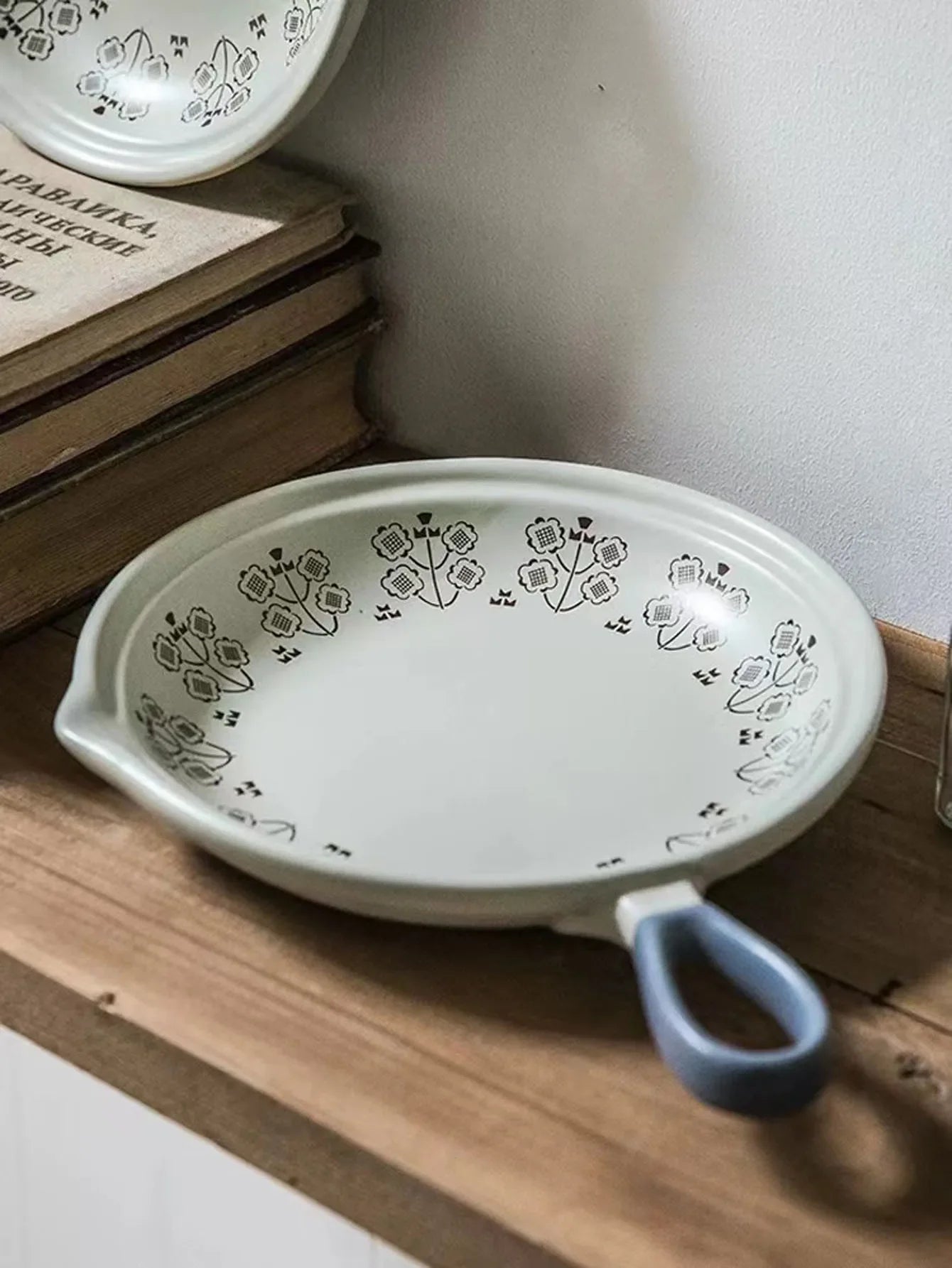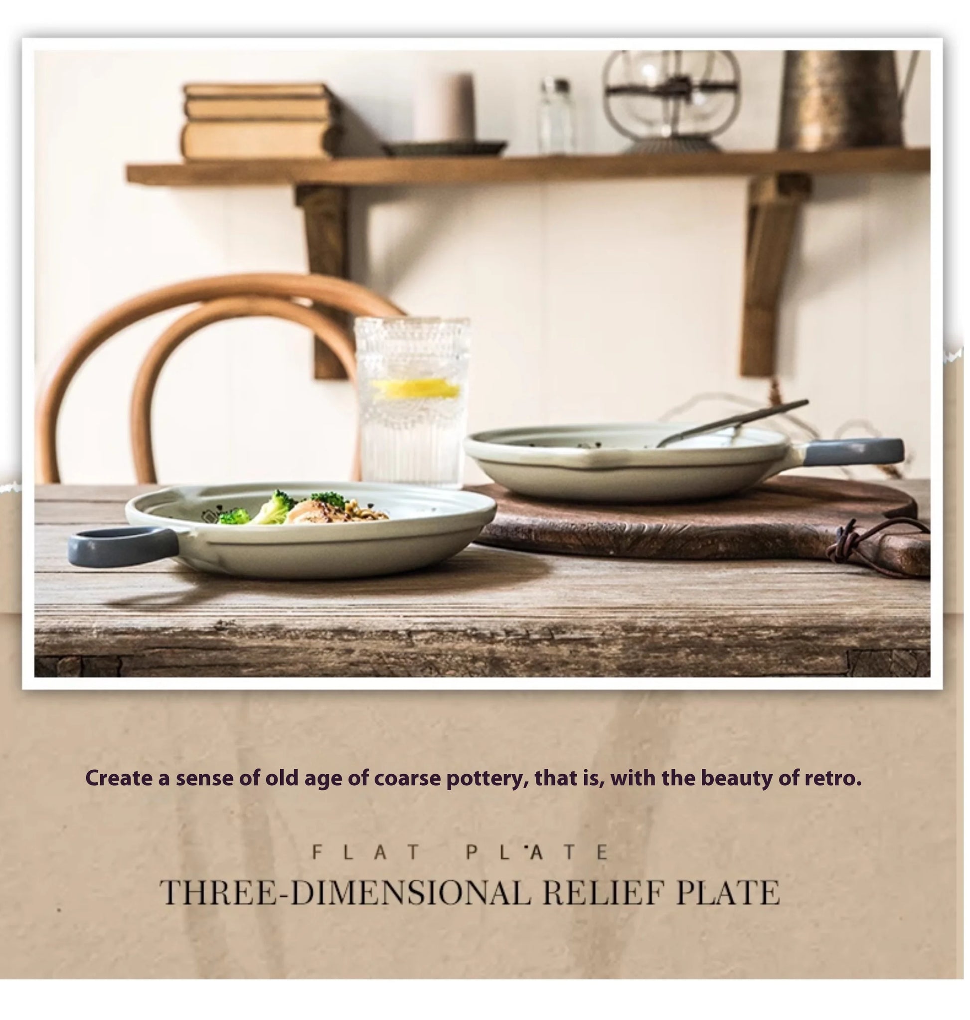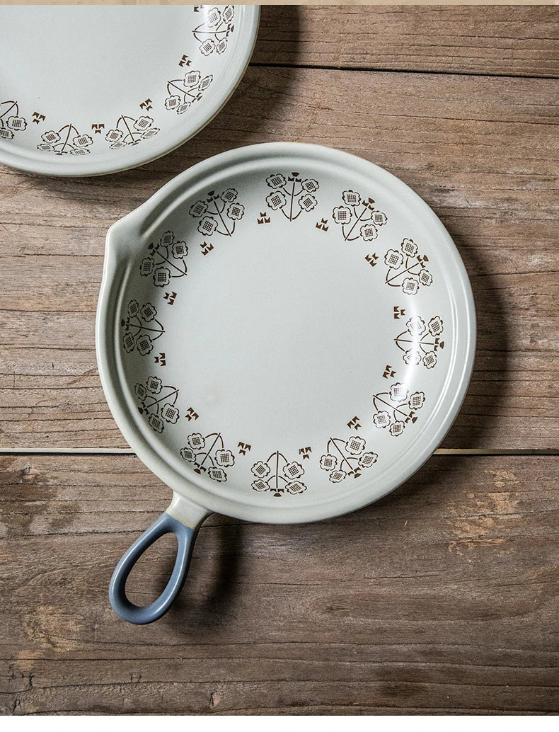 Ceramic Baking Pan Flat Bottomed Frying Pan Wok Pan Fruit Plate with Handle Dinner Dish Party Buffet Restaurant Cookware