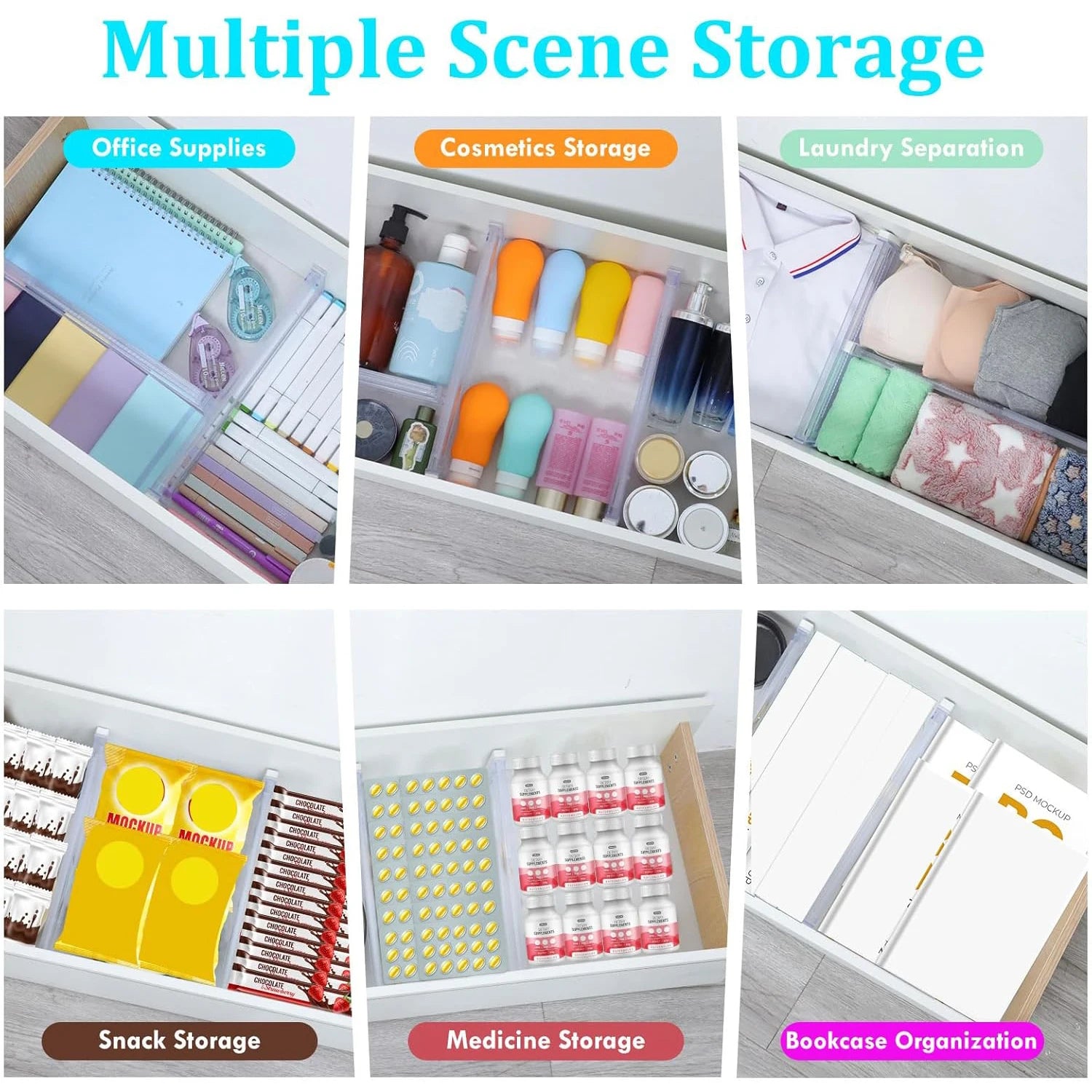Drawer Dividers, 12 pack Adjustable Drawer Organizer, Clear Expandable Dresser Organizer for Clothes Kitchen Utensils Storage