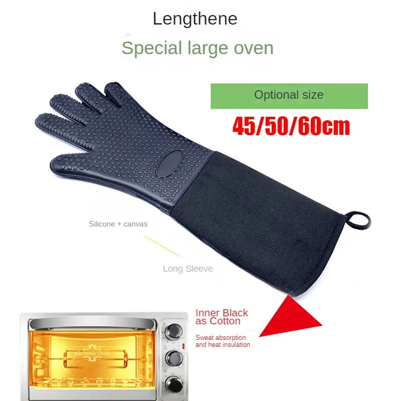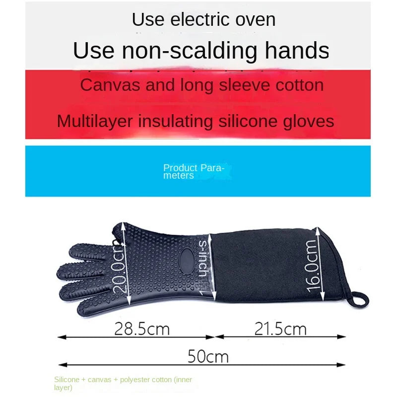 Extra Long Professional Silicone Oven Mitts Gloves with Quilted Liner Durable Heat Resistant Grill Oven Gloves Baking Tools