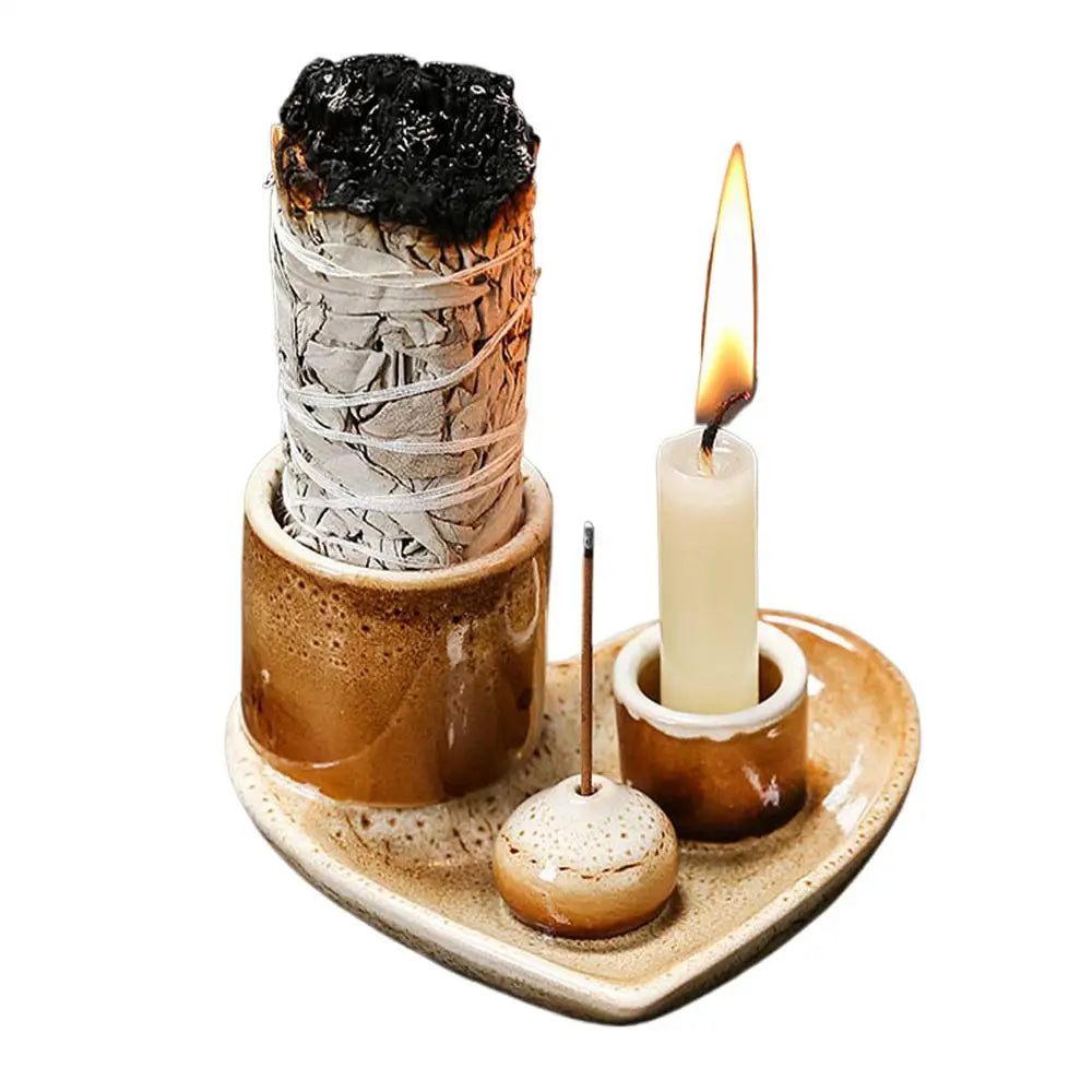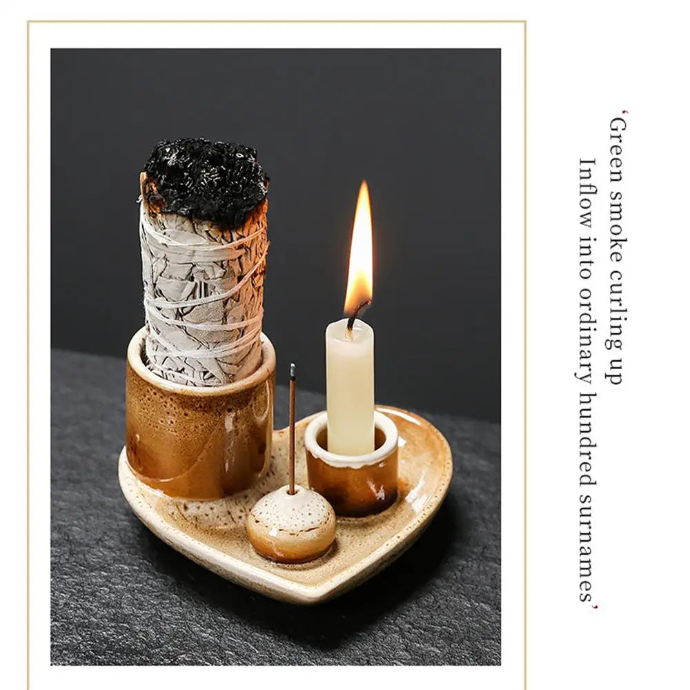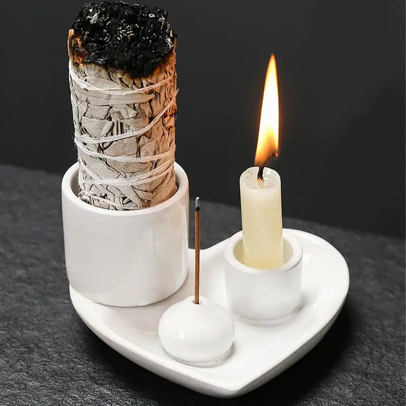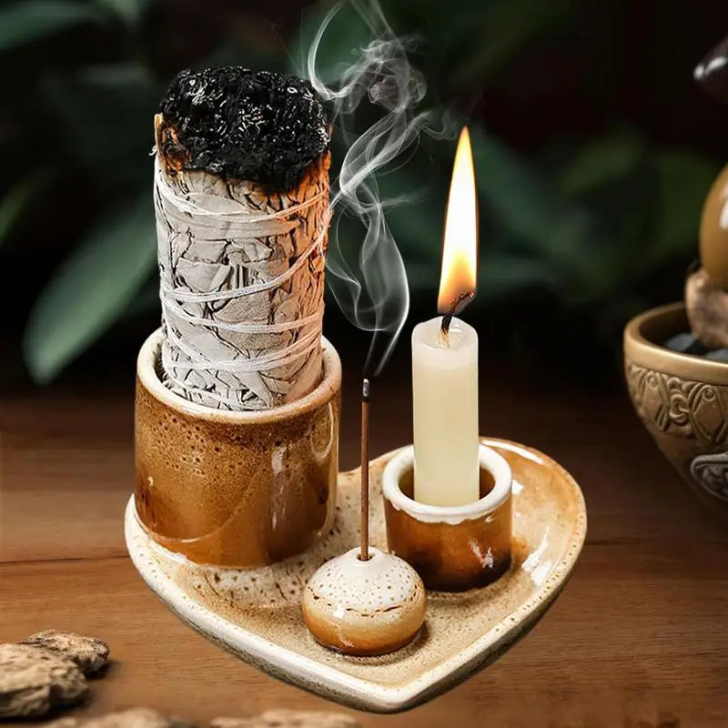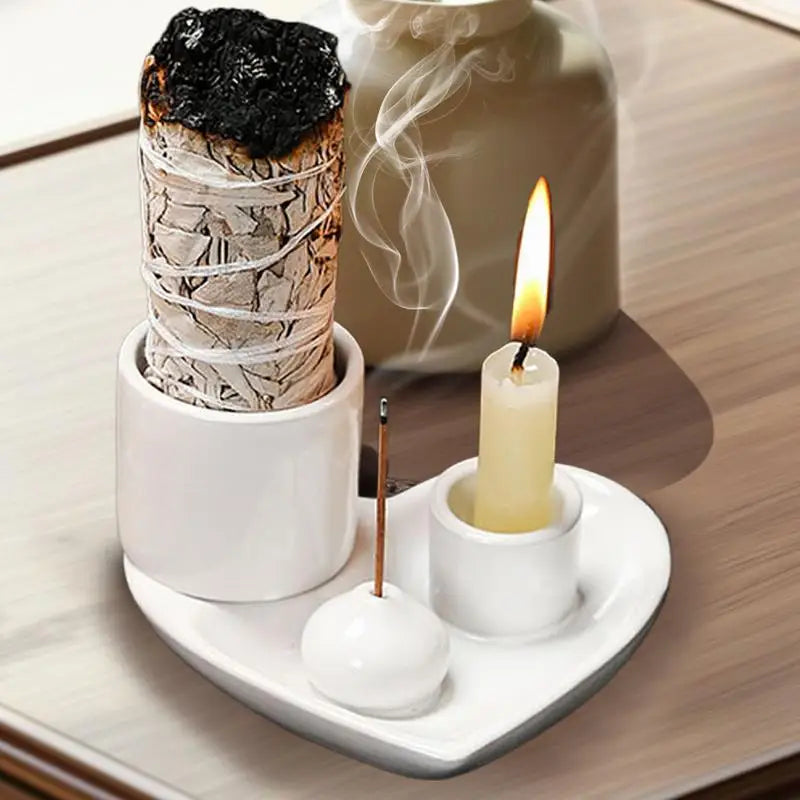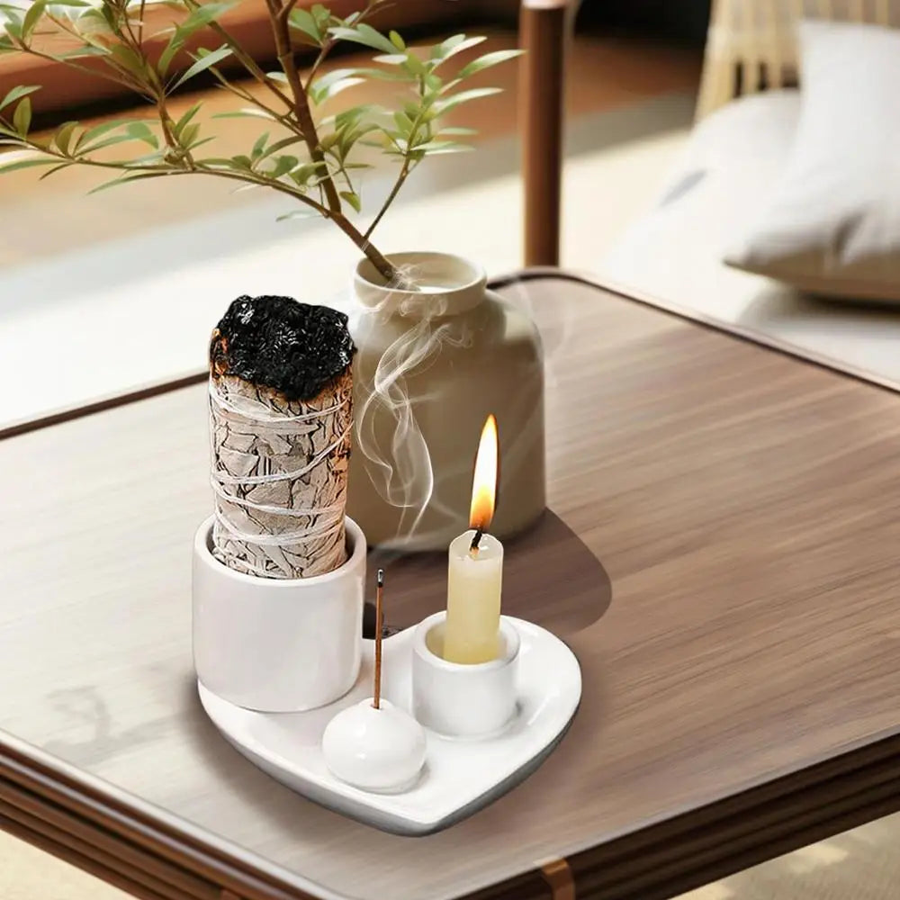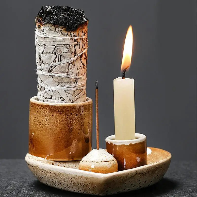 Incense Holder Ceramic Burner Stand Bowl 4-in-1 Incense Stick Holder Spiritual Zen Art For Living Room Yoga Relaxation Home