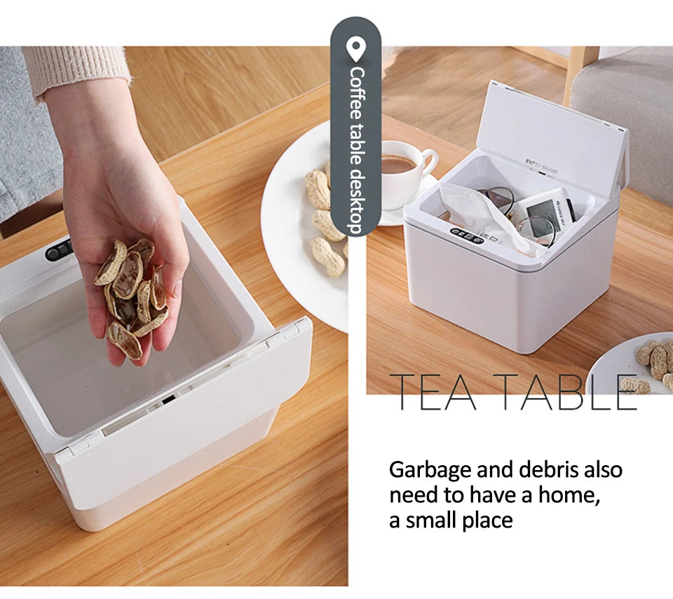 Intelligent Mini Desktop Trash Can Automatic Touchless Infrared Motion Sensor Trash Can Car Trash Portable Storage For Kitchen
