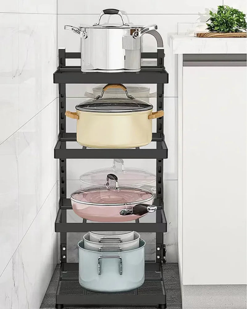 Kitchen Sink Organizer Rack Adjustable Pot Cabinet Rack Holder Multi-layer Home Frying Pan Holder Pot Bowl Storage Racks