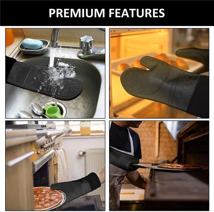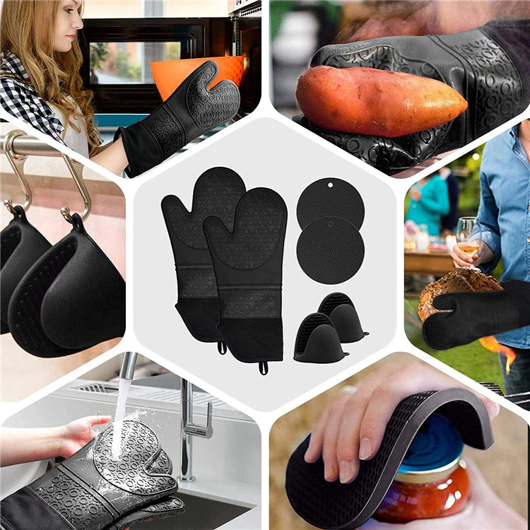 LMETJMA 6Pcs Extra Long Oven Mitts and Pot Holders Sets Heat Resistant Silicone Cooking Gloves Hot Pads Potholders KC0419