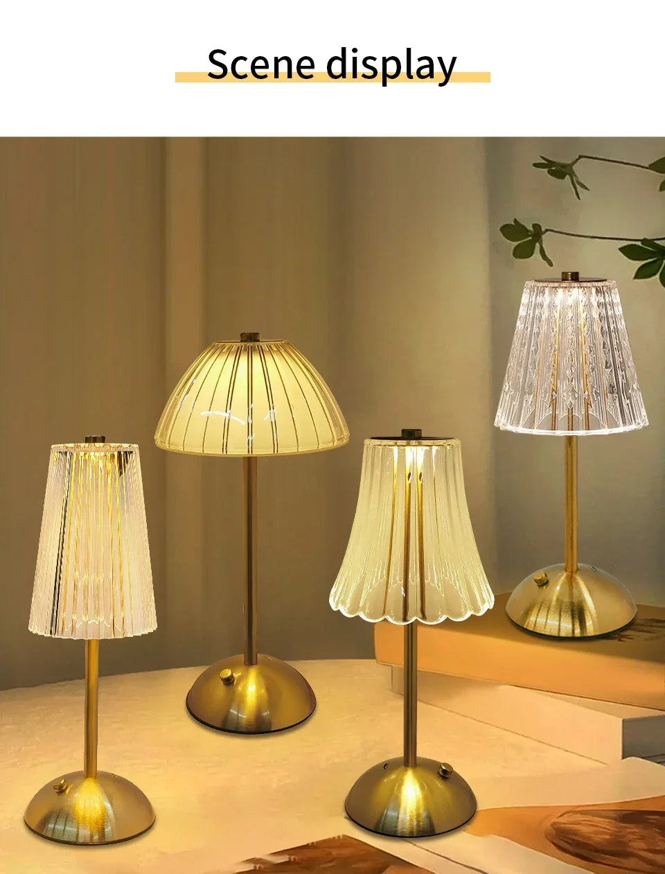 Rechargeable Crystal LED Table Lamp Touch Sensor Dimmable Desktop Nightlight Reading Lamp For Bar Hotel Restaurant Bedroom Decor