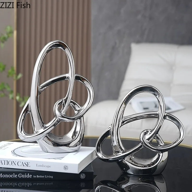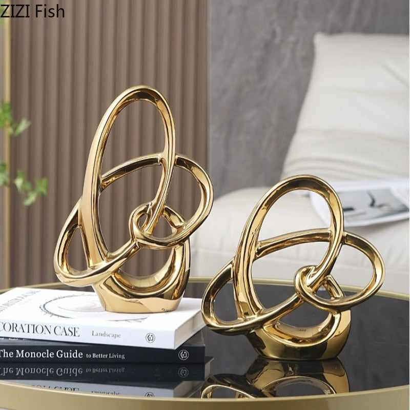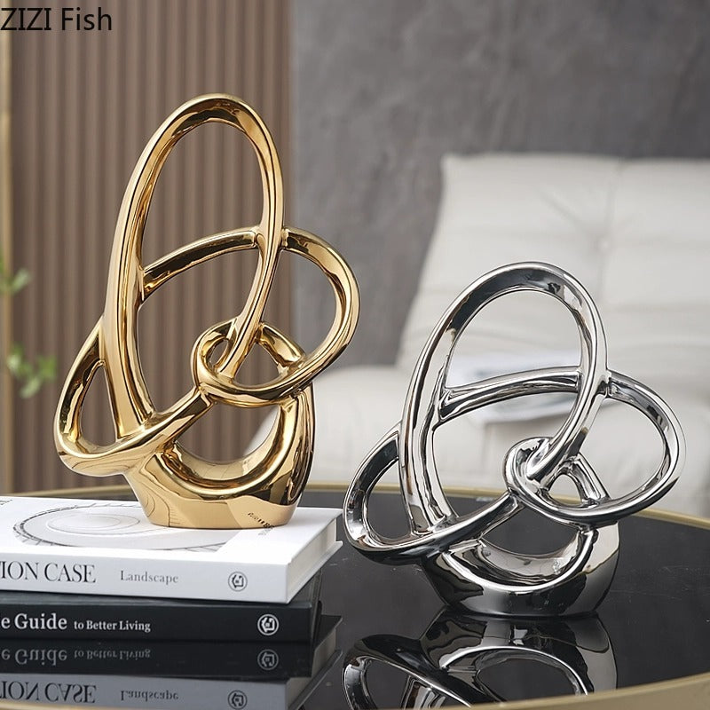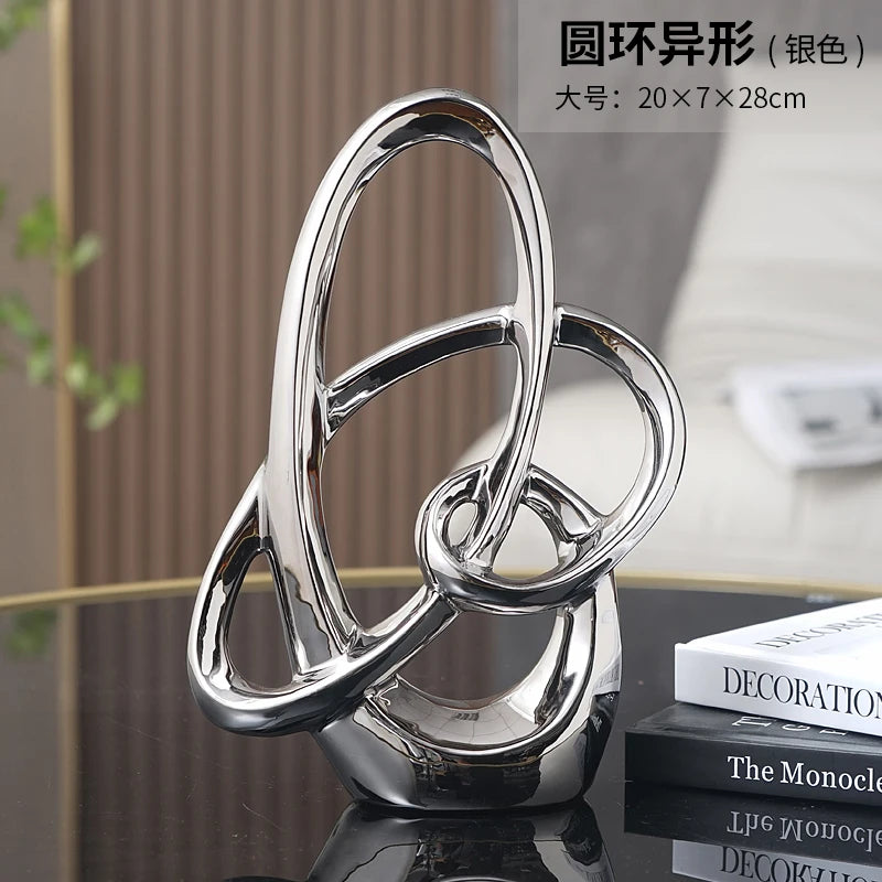 Title: Ring Shaped Ornaments Electroplated Ceramic Sculpture Statue Decoration Furnishing Home Decor Crafts Home Accessories Figurines