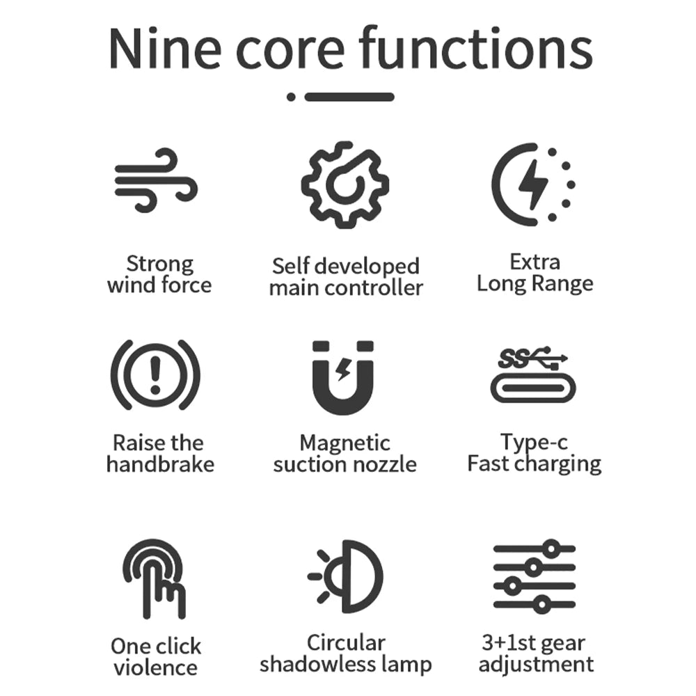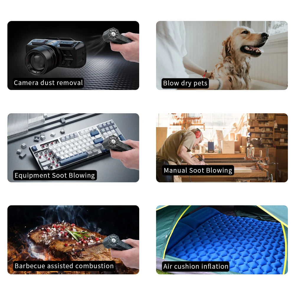 4. Suitable for air cushion blowing suction, computer equipment cleaning, industrial dust blowing, charcoal combustion, car blowing water blowing snow, studio shooting wind, blow-drying pets, available in all seasons, and many other uses.